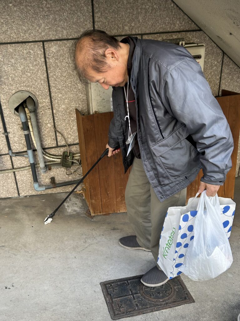 お堀に柵があるのですがその向こうのゴミが手を伸ばしても届かないので参加者の方から「それなら届くわね、向こうに取り残してきたゴミがあるの。ヨロシク」と言われ、確かに我々の道具(マジックハンド)しか処理出来ない箇所の全てのゴミを回収しました。
