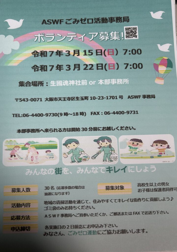 本日は定例の天王寺区ごみゼロ活動に加えて大阪万博開催前の会場で活動しました。